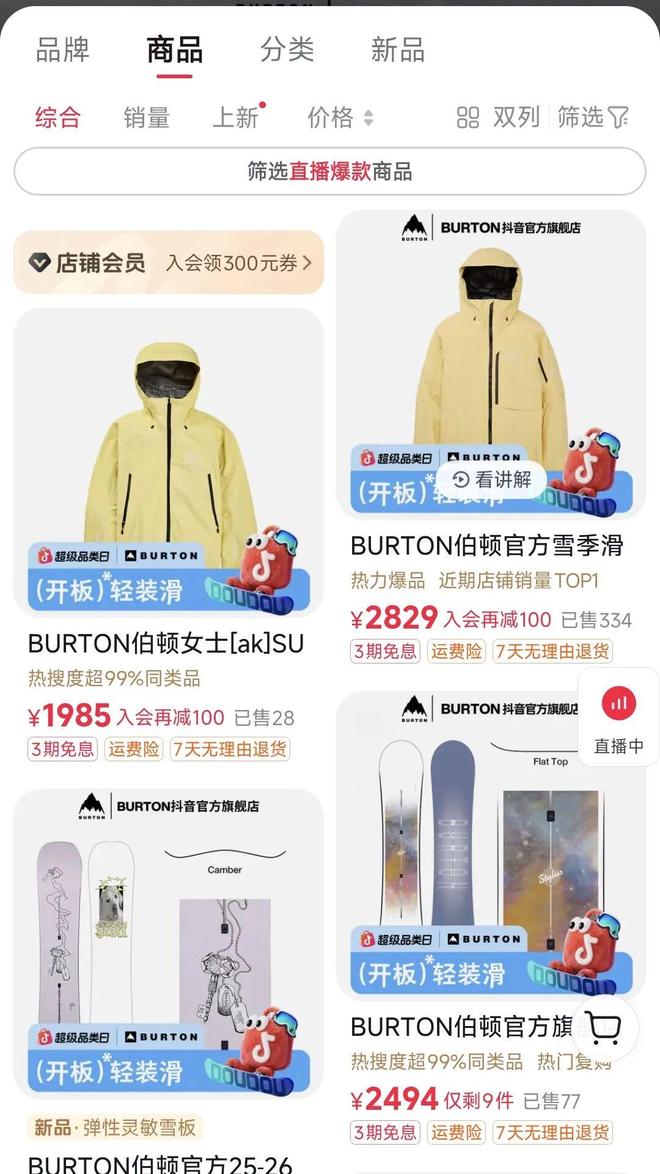 线下,抖音联合抖音商城,在长白山万达国际滑雪场打造“开板轻装滑”沉浸式嘉年华。活动中“轻装秀”环节备受好评,模特与嘉宾演绎轻行极简、高阶色彩等多种风格雪服,将趋势具象化为可触可感的穿搭美学,BURTON、JOHN SNOW、高梵等知名户外品牌都参与其中。