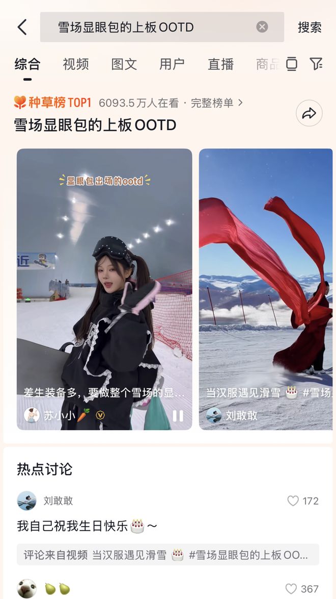 除此之外,还有与度假结合的滑雪之旅、精心搭配的“开板OOTD”、“雪服OOTD”,这些内容丰富多样,兼具运动、观赏与创意。这一新现象就叫做“轻装滑”,即拒绝重工,让滑雪突破运动范畴,轻盈地走进生活中。